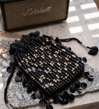 The little black bag that behaves like jewelry. Draped in midnight crystals across a smooth flat profile, it slips under your arm and elevates everything, from a sari to a slip dress to tailored separates. Quiet sparkle, strong presence, instant outfit finisher.